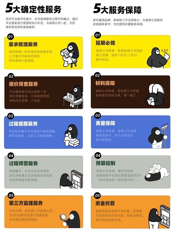 每平每屋与深度合作商户 免费提供5大服务和5大保障