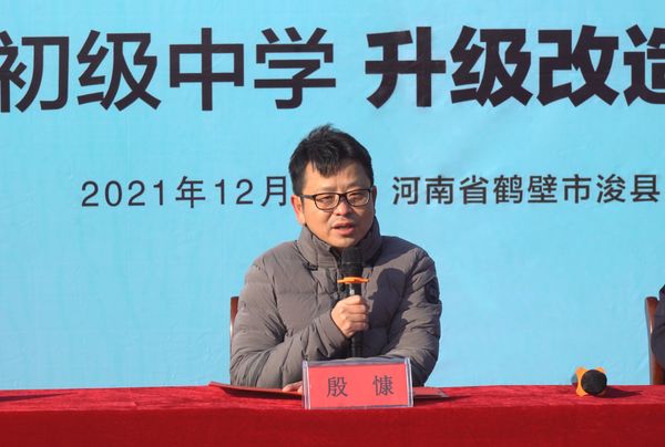 仪式开始,浚县教育体育局副局长李再文发表致辞,他说:“近年来,社会各界仁人志士,纷纷向我们伸出热情的援助之手,捐资助学,改善办学条件,资助贫困学生,为推动浚县教育事业的高质量发展作出了巨大贡献,彰显了‘大爱无疆’的高尚情怀和社会担当!”