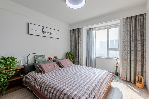 卧室采用了浅色装饰,素雅的床头背景墙和乳白色的床头形成很好的搭配,独具现代艺术感,华丽而不张扬。