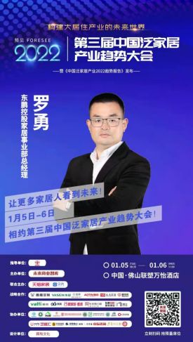 行业期盼已久的思想盛会“预见2022第三届中国泛家居产业趋势大会”将于1月5-6日在佛山举行!同期发布耗时一年的研究成果《中国泛家居产业2022趋势报告》,一场行业前所未有的思想实验,即将开启!东鹏控股家居事业部总经理罗勇应邀出席。