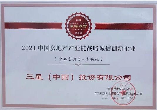 三星中央空调荣获“2021中国房地产产业链战略诚信供应商”大奖