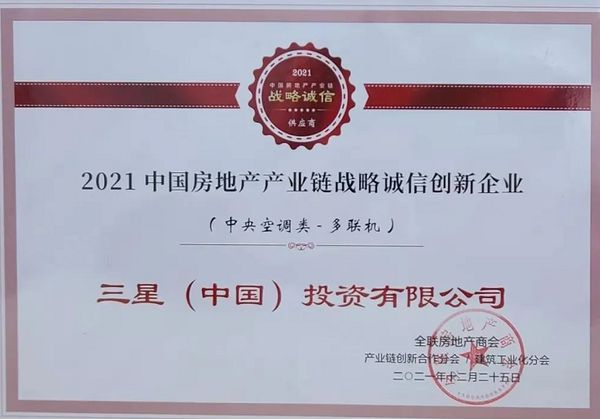 舒适家居快讯|三星中央空调斩获“战略诚信供应商”奖