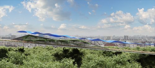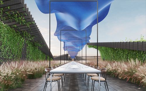除此之外,由于此次主展场在深业上城举办,场地有一条连接深业上城与莲花山公园的长廊步道,高少康因地制宜,引入户外沉浸式体验的设计团队“一夕餐桌”,以连接深业上城到莲花山公园的行人桥,以餐桌的形式去探索人、城市与户外的交流形式,通过当下的设计去思考疫情之下、国潮文化里面人与人的交流、人与天地融合的表达与可能性。