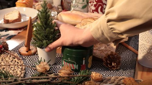 餐厅除了餐桌,如果空间足够大,配上暖白的欧洲山毛榉餐边柜,展现别具一格的空间格调,或者搭配电视剧《小敏家》的同款原木色餐边柜,温馨而不失精致,在餐边柜上摆放雪花松枝作为背景点缀,还可放杯子、饮品、收纳篮等,白+原木+绿色,烘托出浓浓的圣诞氛围。