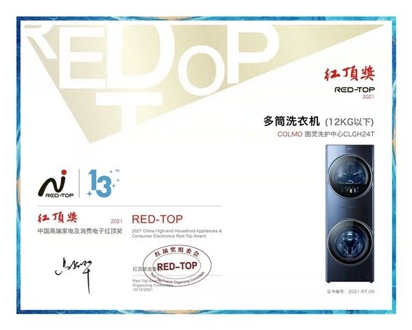 尤其是COLMO TURING干洗护理空间站的推出,其搭载的AI轻干洗2.0技术,在轻干洗1.0技术基础之上全面升级,增加超量高温饱和蒸汽和等离子杀菌祛味两项功能,能够更深入地剥离衣物纤维,更快速、更彻底的剥离灰尘、除菌、抗皱效果更强大。在第13届中国家电趋势发布暨红顶奖颁奖盛典上,COLMO TURING干洗护理空间站加冕高端家电至高荣誉“红顶奖”。