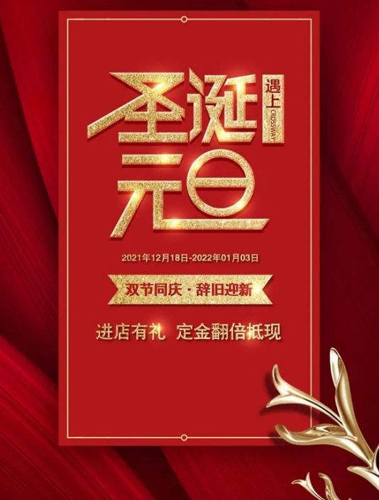 *克洛斯威双旦钜惠正在火热进行中,各地门店活动内容有所不同,详情敬请咨询当地门店。