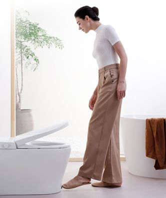 和很多智能马桶不同的是,智米智能马桶一体机还别出心裁地采用了脚触控制设计。不需要再费力气用手开合盖,用户只需要用脚尖轻触机身底部的圆形按钮,即可轻松实现一触开盖、二触开圈、再触合盖冲水的优雅如厕体验。