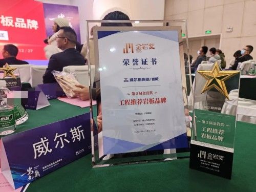 2021年12月27日下午,由中国陶瓷网主办的岩板行业发展战略峰会暨第二届“金岩奖”颁奖典礼在佛山举行。本届金岩奖,威尔斯MAX+岩板从激烈的竞争中脱颖而出,成为2021年岩板界闪耀明星之一!以绝对实力斩获重量级荣誉称号“工程推荐岩板品牌”殊荣,彰显高端岩板品牌实力。