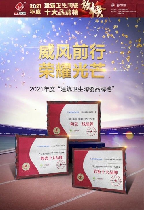2021年10月14日,以“新趋势,大品牌”为主题的第十一届中国房地产与泛家居行业跨界峰会暨2021年度“建筑卫生陶瓷十大品牌榜”颁奖盛典评选活动在广东佛山隆重举行。威尔斯陶瓷凭借雄厚的品牌实力和卓越的产品品质,深受行业内外的认可和支持,赢得了网友和专家评审团的一致认可,斩获2021年度多项重磅级荣誉称号。