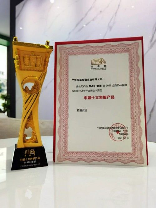 2021年7月20日下午,2021首届中国岩板影响力品牌峰会暨金鼎奖颁奖盛典在广州隆重举行。经过专家组专业、公平、严格的评选,威尔斯MAX+岩板从激烈的竞争中脱颖而出,以绝对实力斩获重量级荣誉称号,成为活动上的瞩目焦点。