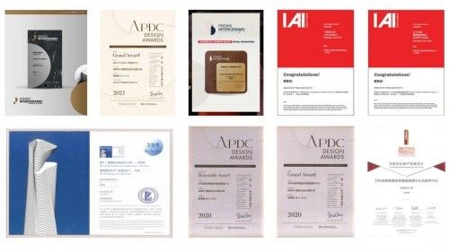 2021 Design Awards List:北美PI设计大奖-室内设计类·杰出室内设计奖 、IAI全球设计奖(室内奖)办公空间银奖、APDC亚太设计精英赛公共空间大奖、APDC亚太设计精英赛软装陈设大奖、IDEA-TOPS艾特奖最佳陈设艺术(软装设计)大奖、金堂奖年度地产软装设计奖、北美PI设计大奖-室内设计类·商业特别提名奖、IAI全球设计奖(室内奖)商业空间优秀奖中国金茂优秀供应商大奖