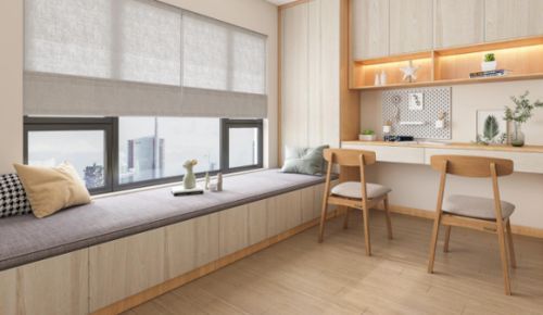 靠窗定制飘窗柜,扩大储物空间,上铺软垫,可以坐躺在上面休息,放松身心;靠飘窗柜定制书柜和书桌,又成为了一个学习办公区,没有独立书房的家庭,就能把这里当开放式书房了哦~