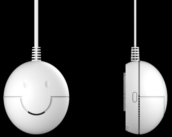 可爱圆润的造型,开心微笑的设计,眼睛三色:(红色)超标报警、(黄色)故障提醒、(绿色)设备正常;