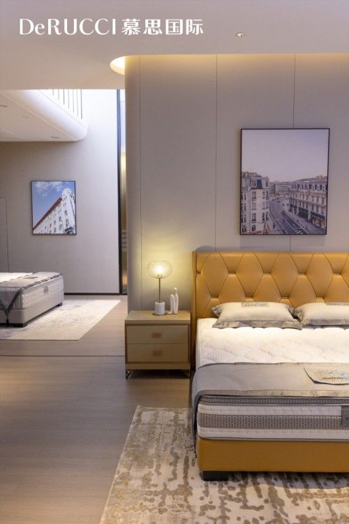 除了硬装之外,软装、陈列、灯光与空间形成互动也很重要。慕思国际精心挑选摩登时尚的灯饰、挂画、床头装饰摆件等系统营造静谧舒适的体验氛围,与消费者心理形成共鸣,从而提升终端销售的转单率。
