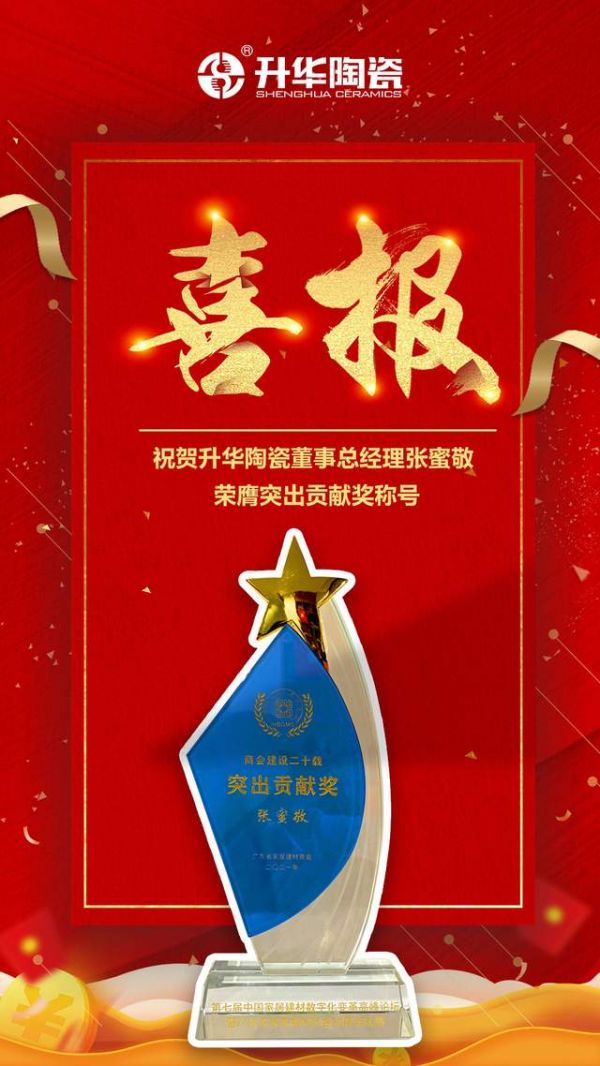 作为副会长单位,升华陶瓷始终兢兢业业,凭借强大的品牌实力,得到行业与商会的高度肯定以及消费者的青睐,董事总经理张蜜敬更是荣获广东省家居建材商会“突出贡献奖”嘉奖。