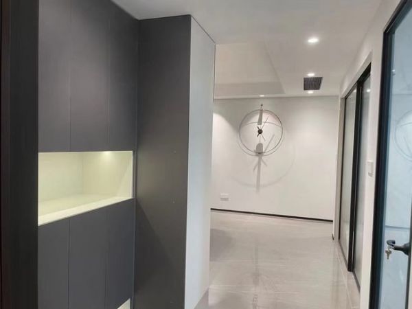 入户玄关定制一组柜子,中间镂空用来放钥匙、包包等一些小物件,灯带的设计为空间增添了一份装饰之美。