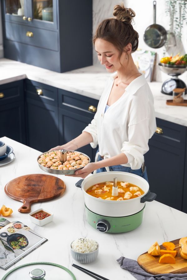 不过想要做好一份海鲜火锅,除了新鲜食材外,还要有好用的厨具。传统火锅有很多不便之处:捞取不便、筷子入汤不卫生、久煮口感显老不健康、口味单一、功能单一等。而有了摩飞多功能升降料理锅,以上难题都能轻松解决,让大家更便捷的享用美食。