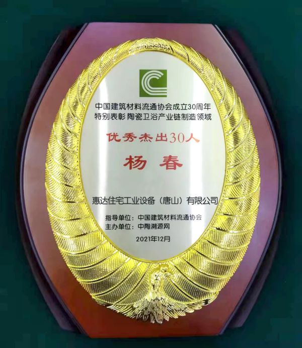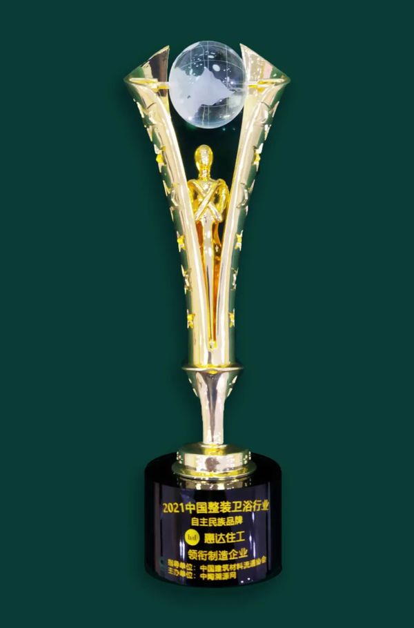 作为建材与家居行业的年度盛事,来自全国家居建材行业的专家、房地产企业家、工程建设单位负责人以及行业知名媒体人等精英齐聚一堂,共话绿色建筑发展新趋势。经过专家组综合评审,惠达住工凭借强大的品牌影响力以及卓越的产品质量分别荣获2021年中国整装卫浴行业“自主民族品牌”领衔制造企业奖和“精工匠心金奖”,同时,惠达住工总经理杨春被评为“陶瓷卫浴产业链制造领域杰出人物”。