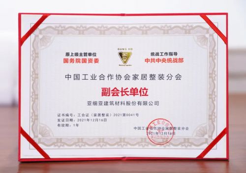 本次大会邀请了包括亚细亚瓷砖在内的泛家居行业优秀企业,共同探讨未来家居整装的发展趋势以及可行性发展道路。同时,中国工业合作协会家居整装分会也在本次活动上正式成立,亚细亚瓷砖被评为「中国工业合作协会家居整装分会—副会长单位」,同时荣获「十大陶瓷品牌」。