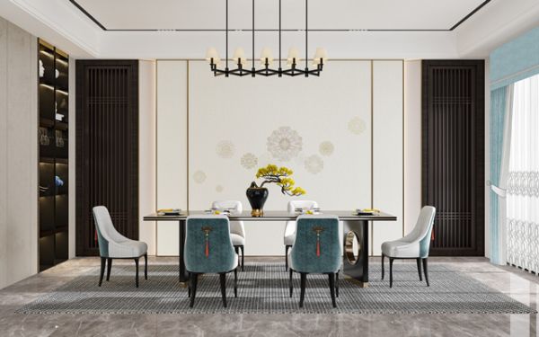 淡雅的色彩、简练的线条,对称的布局以及富有禅意的空间韵味,都能让传统艺术,在新中式空间中大放异彩,展现出亦古亦今的层次美感。