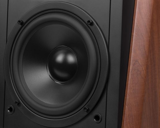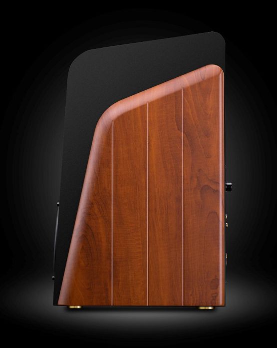 M300MKII箱体外部由黑色哑光漆面包裹,两侧搭配豪华木纹侧板,这一设计无不透露着惠威的独到审美和个性灵感,充满古朴雅致的格调。在保证美观的同时,也有效减少了箱体谐振对声音的影响,让音箱结构更单纯、声音的质量密度更好,以释放出至纯至净的上乘音质。
