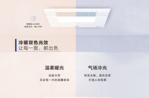 还有冷暖双色光效,冷光明亮,暖光治愈,可以根据心情随心开启;搭载的贴心小夜灯,能在每个夜晚给你默默无闻的守候。还有最基本的一点,那就是颜值高!一改浴霸固有的形象,外观酷炫,超长格栅设计打破常规,作为颜值控来说,真的是很喜欢了。