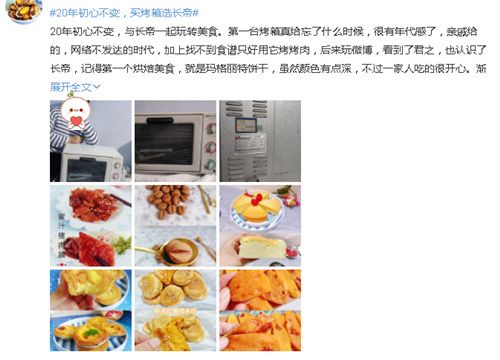 只要细心留意本次活动的投稿,便会发现“超长待机”是投稿中常出现的高频词。“作为长帝的老粉,看到此次寻找老用户的活动我超级激动,因为我家不久前退休的老伙伴就是长帝二十多年前的CK-12B烤箱!”