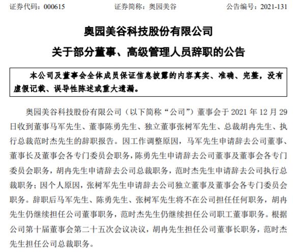 快讯|奥园美谷总裁、执行总裁、董事、独立董事集体辞职