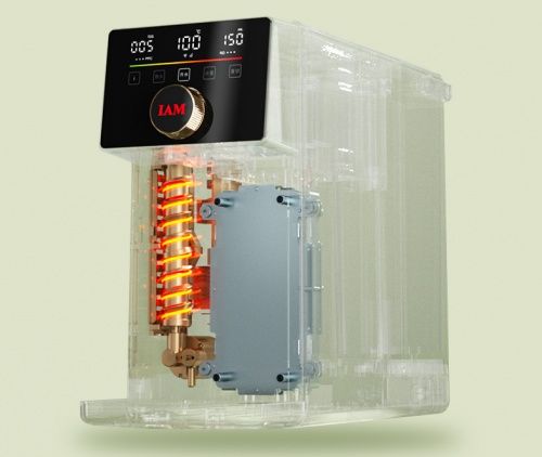 据悉,IAM首创的熟水机是区别于普通饮水机的一种集合了即热速冷技术的新型饮水机产品,能够将水迅速烧开到沸腾并极速冷却到适饮温度,让使用者能在短时间内喝上一杯温开水,在饮水安全越来越重视的今天,为家庭饮水提供了一个更健康、省电、安全、环保的解决方案。