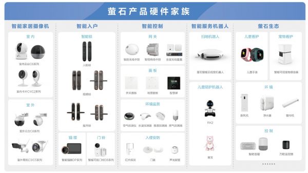 萤石成立于2015年,围绕着智能生活的多元化场景,打造了“4+N”的产品体系,在集中研发、设计智能家居摄像机、智能入户、智能控制和智能服务机器人等四大核心特色产品的同时,基于萤石物联云平台的基础管理和智能分析能力,持续通过生态合作开发拓展智能家居产品矩阵。