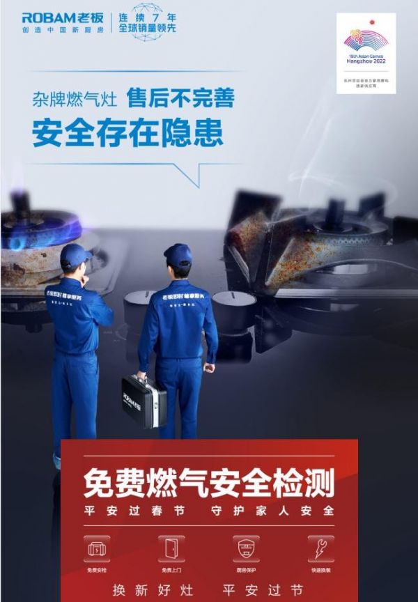 作为厨电行业杰出企业,老板电器率先发起“免费燃气安全检测”,为国内千万家庭的春节保驾护航。每一次产品和服务迭代背后,老板电器的初心都是带给用户更加安全的产品使用体验以及更加人性化的服务,为千万家庭带来理想中的厨房生活。