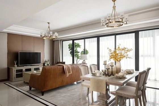 Aspen三人沙发当仁不让的成为了客餐空间的视线焦点,沙发整体油蜡皮的工艺、材质,给平静的生活增添休闲氛围,坐拥客餐厅空间的核心区域,简单却不失高级感。