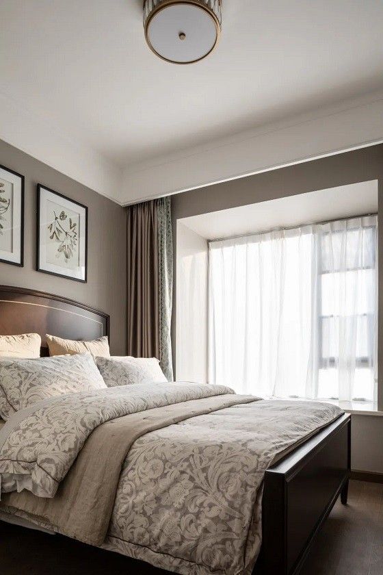 次卧平时多用于老人房或者客房使用,在家具搭配上以暖咖色调的Jenner系列为主,处处洋溢着宁静温柔的调调。得益于户型的特点,该套案例的几个卧室空间都拥有极佳的光照。