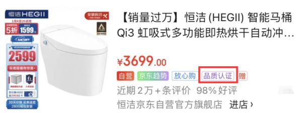 市面上的智能马桶产品琳琅满目,但对于普通消费者来说,如何挑选到品质过硬、性能优秀的产品并非易事。为了帮助消费者更便捷地遴选优质智能马桶产品,京东携手优质商家和质检机构共同推出《京东开放平台/自营智能坐便器商品品质认证质量标准》,并持续加强品质管控,通过入仓验收、在仓巡检、体验抽检、飞行检查,设置“品质推优专项计划”等举措,打造出全面的“品质生态体系”,为消费者筑牢高品质保障防线。
