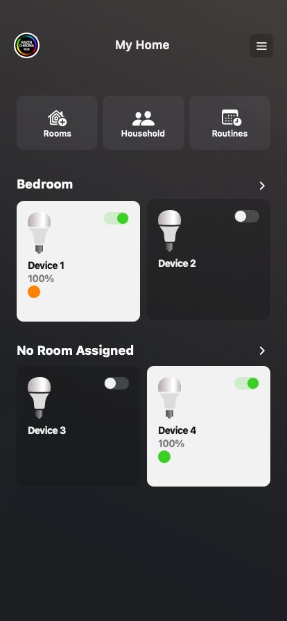 凭借Razer Chroma幻彩RGB灯光技术,Razer Smart Home智能家居App所拥有的约1680万种色彩与一系列灯光效果能够让用户根据喜好与心情自定义灯光,亦或是配合家中的娱乐场景打造身临其境的灯光氛围。