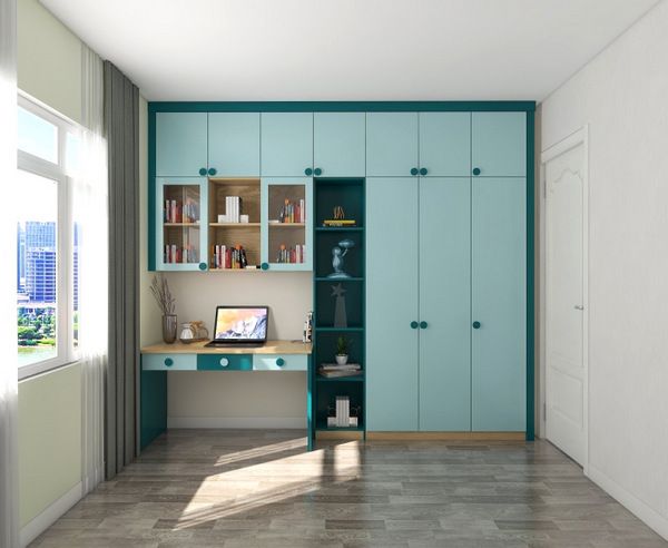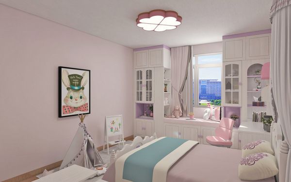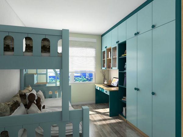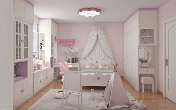在房门处利用玄关空间巧妙设计化妆台,方便孩子外出时梳妆打扮,整理着装。