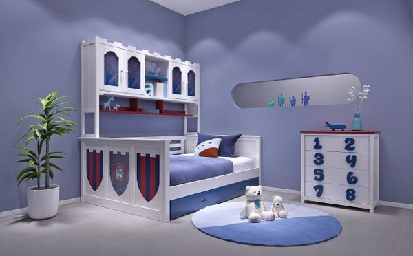 经典红蓝撞色搭配,盾牌+城墙的坚稳守护,给孩子建造一个安全属地,随时让人沉静在轻松的氛围当中。