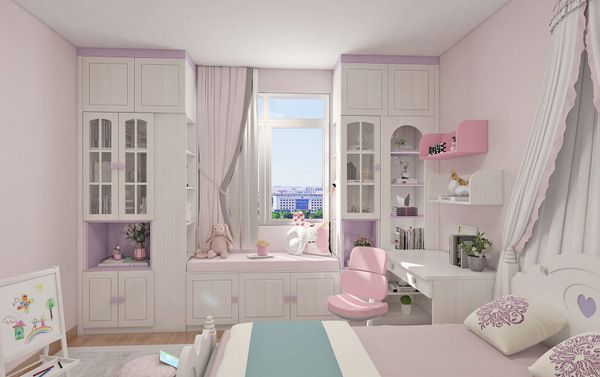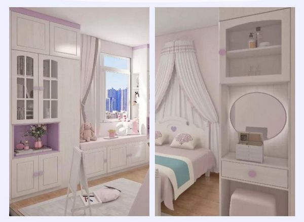 收纳充分利用墙面空间,榻榻米下方在留白上恰到好处,让每一个喜欢紫色的孩子,DNA都忍不住狠狠动了~
