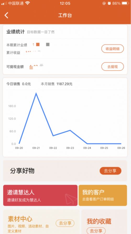 1、业绩快速浏览。在KOC中心,使用者可以非常直观地看到本期累计业绩、累计收益,智能统计、自动生成业绩数据,而且从收益明细可以实现提现功能,绑定银行卡可进行提现,更方便、更快捷。