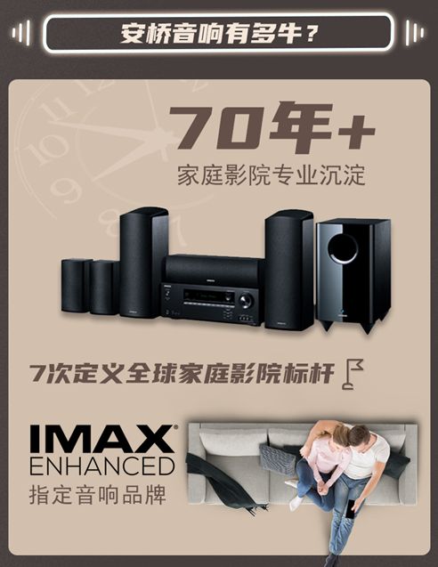 此外,安桥还联手杜比实验室,成为全球首家推出含杜比全景声技术的功放产品,并把杜比全景声技术引入家庭影院,目前成为了IMAX ENHANCED指定音响硬件供应商。