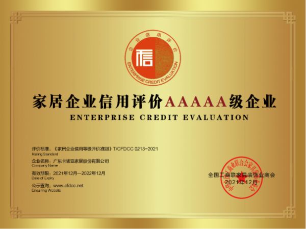 近日,经全国工商联家具装饰业商会的严格评审,卡诺亚被评定为“家居企业信用评价5A级企业”以及“家居产品质量评价五星级企业”,这是行业与市场对卡诺亚诚信经营、坚守品质与贴心服务的认可和赞誉。
