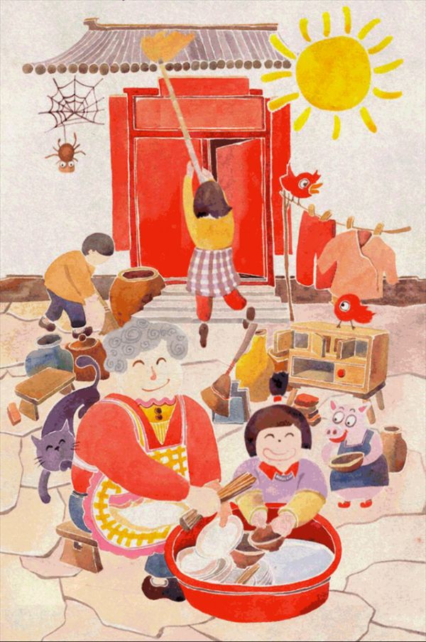 大人小孩齐动手,或拿着拖把、扫把,或拧着毛巾、抹布,把屋里内外收拾得干干净净,焕然一新。