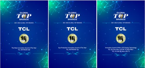 不仅如此,在同期公布的2021-2022全球领先品牌Global Top Brands榜单上,TCL还拿下了“2021-2022年度消费电子领先品牌前十”、“2021-2022年度全球智能手机领先品牌前十五”、“2021-2022年度全球智能互联设备领先品牌前十五”、“2021-2022年度全球电视品牌前十”、“2021-2022年度全球消费电子前五十”、“2021-2022年度国际创新企业品牌奖”六项品牌大奖,一度迎来了中国品牌的高光时刻。
