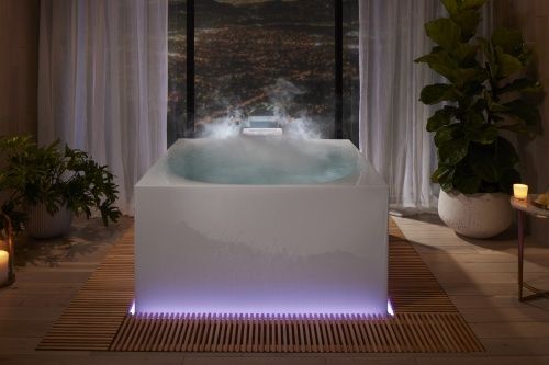 在本次展会上备受瞩目的科勒朗月 独立 浴缸 , 也确认将于2022年正式上市。这款浴缸的设计灵感来源于日本森林浴,通过水流、灯光、水气和香氛交织出了沉浸式感官体验,达到放松心灵、舒缓身体和焕活精神的目的。采用无边溢流的循环水流设计,当热水缓缓注入浴缸,一段自我疗愈的旅程便也起航,随着水流逐渐溢出,宛若山林间的潺潺溪流,环绕四周的全光谱照明营造各式氛围,氤氲水气袅袅升起,仿佛一层薄纱轻柔笼罩,让沐浴者享受深层放松。最后还可以画龙点睛地添加一些精油,香氛随着水气柔和散发,打造居家SPA体验,让人可以在此静心冥想,沉浸于充满幸福感的私享空间。