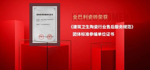近日,关于《建筑卫生陶瓷行业售后服务规范》团体标准发布与授牌仪式,会议在佛山陶瓷总部基地举行。金巴利瓷砖受邀出席本次会议,并被授予《建筑卫生陶瓷行业售后服务规范》团体标准参编单位证书。