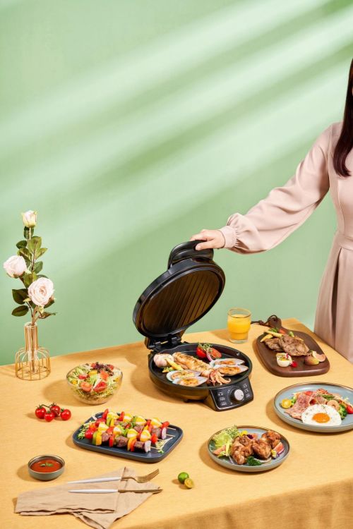 这款电饼铛可以做到一机多用,除了发面饼和煎饺,它还能做披萨、烤肉之类的,用它烤肉外焦里嫩、滋滋冒油,只需要自己在家准备好原材料就能制作,自己制作,一锅多吃,尽享不同美味。外出旅游带上自己亲手制作的烤肉便当,美景和美食融为一色,还可以拍出高级的照片,比在烤肉店嘈杂的环境中自由安逸多了,实在是美妙之选。