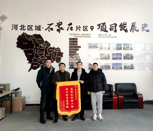 近期,惠达住工凭借卓越的产品品质和快速优质的服务,收到了来自碧桂园地产授予的锦旗。