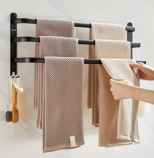 通常毛巾架都是静态的,而卡贝这款旋转毛巾架是动态的。从上之下有4个挂杆且均可以进行180°的旋转。