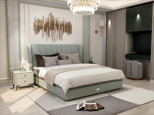 东宝床垫这款皮床走的是轻奢风格的设计,双飞翼床屏、分段式靠包、质感真皮面料,还有金属高床脚,细节处无不透露着对高品质的追求。