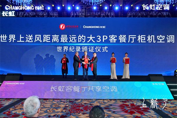 “世界上送风距离最远的大3P客餐厅柜机空调,世界纪录成功!”世界纪录协会高级认证官吉森先生庄重宣读世界纪录协会的官方认证书。1月5日,长虹新品客餐厅共享空调上市发布会在蓉圆满举行。发布会上,新品客餐厅共享空调创空调最远送风距离世界纪录,远风可达20米,荣登世界之最!